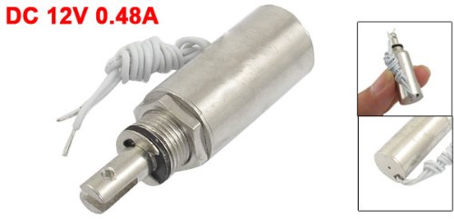 DC 12V 0,48A 10mm Hub Force Pull Tubular Solenoid Elektromagneten – Produktname: DC Solenoid Elektromagnet; Modell: 1325s-12V25; Nennspannung: DC 12V – Nennstrom: 0,48A; Aktion Form: Pull; spezifische Hub: 10mm, 50GF – Zylinder Größe (ca.): 3,2x 1,3cm/3,3x 1,3cm (L * D); Plunger Dia. : 3,9x 0,5cm/4,1x 0,5cm (L * D Max.); Kabellänge (ca.): 14,5cm/14,5cm (je) – Befestigungsgewinde Dia. : 8.6mm/0,9cm; Externe Material: Metall, elektronische Teile; Hauptfarbe: Silber Ton – Gewicht: 24g; Packungsinhalt: 1x DC Solenoid Elektromagneten